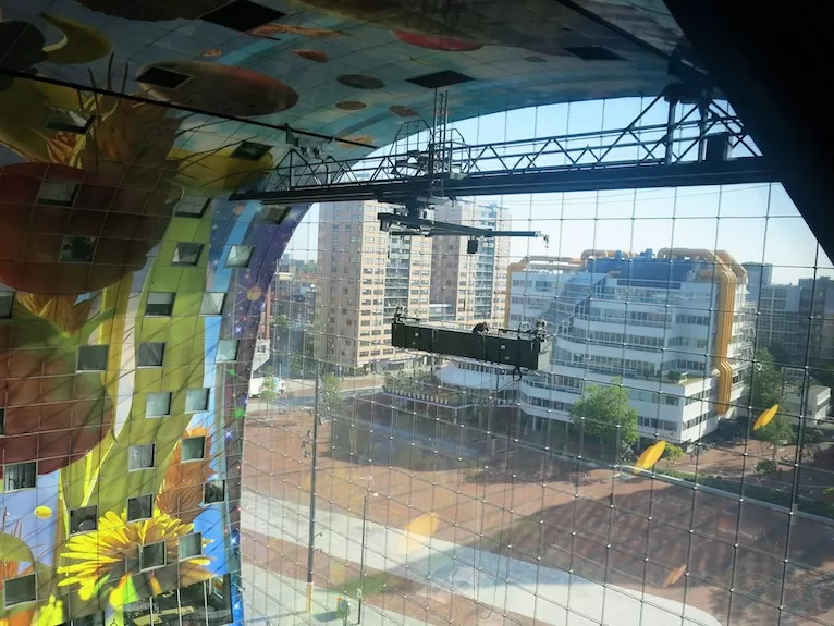 Markthal, or The Market Hall is a mixed-use development which encompasses bars, restaurants and 228 apartments which form an arch stretching over the bustling central marketplace. The development features a flexible suspended glass facade, the largest of its kind in Europe and the ceiling of the market is completely covered with a breathtaking work of art.